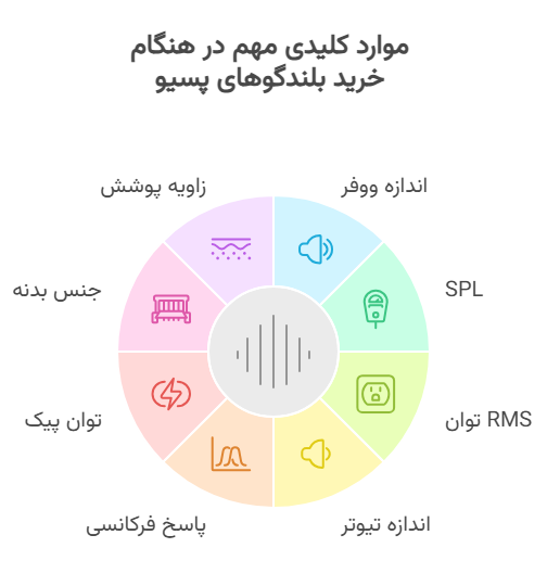 همچنین باید در هنگام خرید بلندگو پسیو به این نکته توجه داشته باشید که هر آمپلی فایر قادر به ساپورت کردن تعداد مشخصی از این نوع باندهاست و شما باید به نوع آمپلی فایر خود نیز در هنگام خرید توجه نمایید.