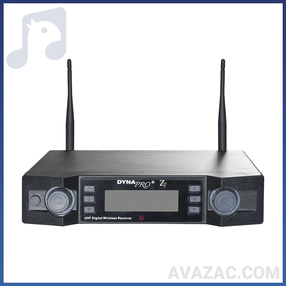 – میکروفن بی سیم دستی دایناپرو مدلZ7 گیرنده ی دو کاناله به همراه قابلیت تنظیم فرکانس تا ۱۰۰ کانال را دارد.