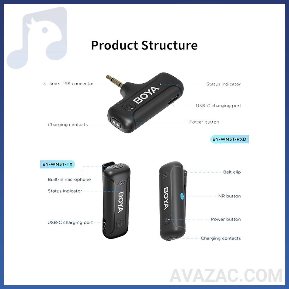 بهتر است قبل از خرید میکروفن یقه ای بی سیم بویا WM3T M2 با باکس شارژ، قیمت آن را در فروشگاههای مختلف مورد بررسی قرار دهید. همچنین بررسی مشخصات فنی محصول و سازگاری آن با نیاز شما از اهمیت ویژهای برخوردار است. چنانچه قصد دارید میکروفون مورد نیاز خود را به صورت اینترنتی خریداری کنید، بهتر است به معتبر بودن فروشگاه آنلاین مورد نظر توجهی ویژه داشته باشید. فروشگاه اینترنتی آوازک، مدت زیادی است که در زمینه فروش تجهیزات صوتی و نورپردازی فعالیت میکند. این مجموعه ارائه دهنده خدمات پس از فروش مناسب و همچنین خدمات مشاورهای ارزندهای است. کارشناسان مشغول به کار در آوازک، در طول ساعات اداری، آماده ارائه خدمات به شما عزیزان هستند.