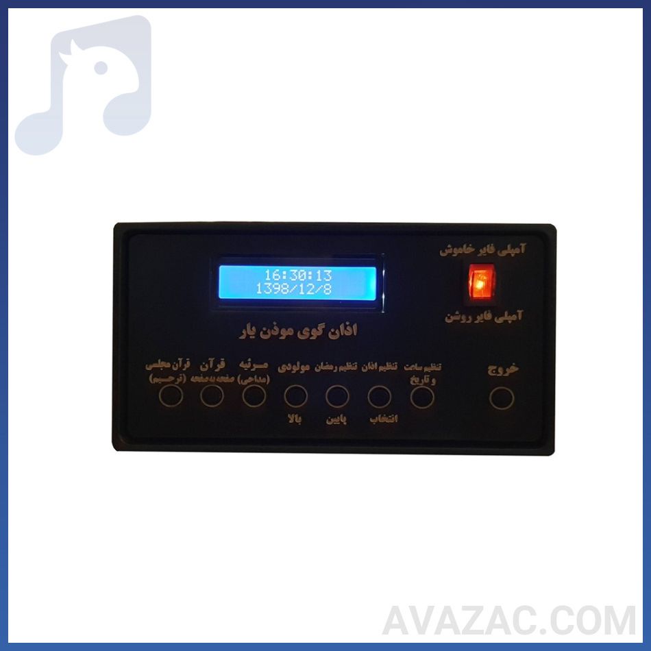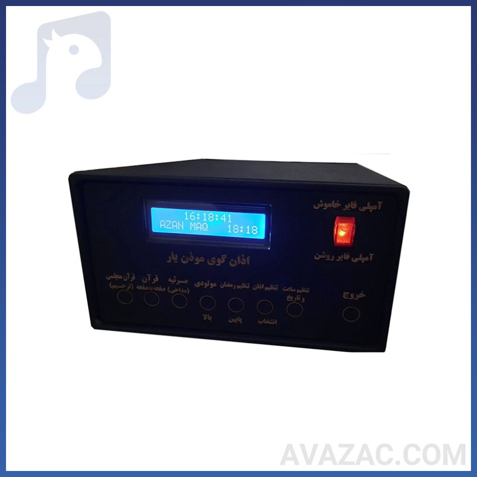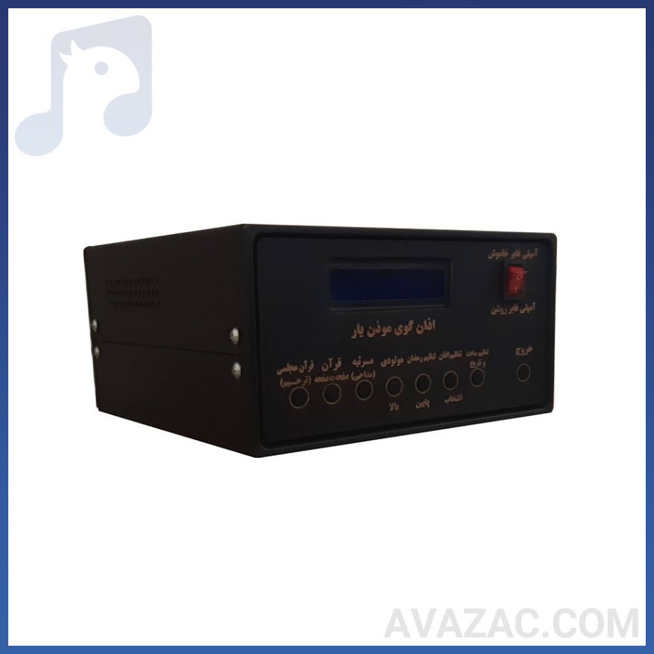 دستگاه اذان گو موذن یار با طراحی هوشمند و امکانات متنوع، پخش اذان را ساده و خودکار میکند. فروشگاه آوازک با ارائه این محصول و پشتیبانی حرفهای، خریدی مطمئن را تضمین میکند. این دستگاه با کیفیت ساخت ایرانی، انتخابی اقتصادی و کاربردی برای اماکن مذهبی است.