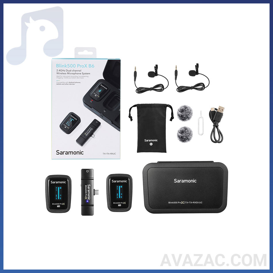 از نظر امکانات میکروفون بیسیم یقه ای سارامونیک SARAMONIC Blink500 Prox B6، فرستندهها و گیرنده دارای صفحه نمایش هستند و از طریق USB-C شارژ میشوند. باتری داخلی فرستندهها تا ۱۰ ساعت کار میکند و کیس شارژ با کمتر از ۳ ساعت، آنها را آماده استفاده میکند. دارای ۲ عدد بادگیر پشمی میباشد و جنس بدنه پلاستیکی مقاوم و سبک، دوام و راحتی را تضمین میکند.