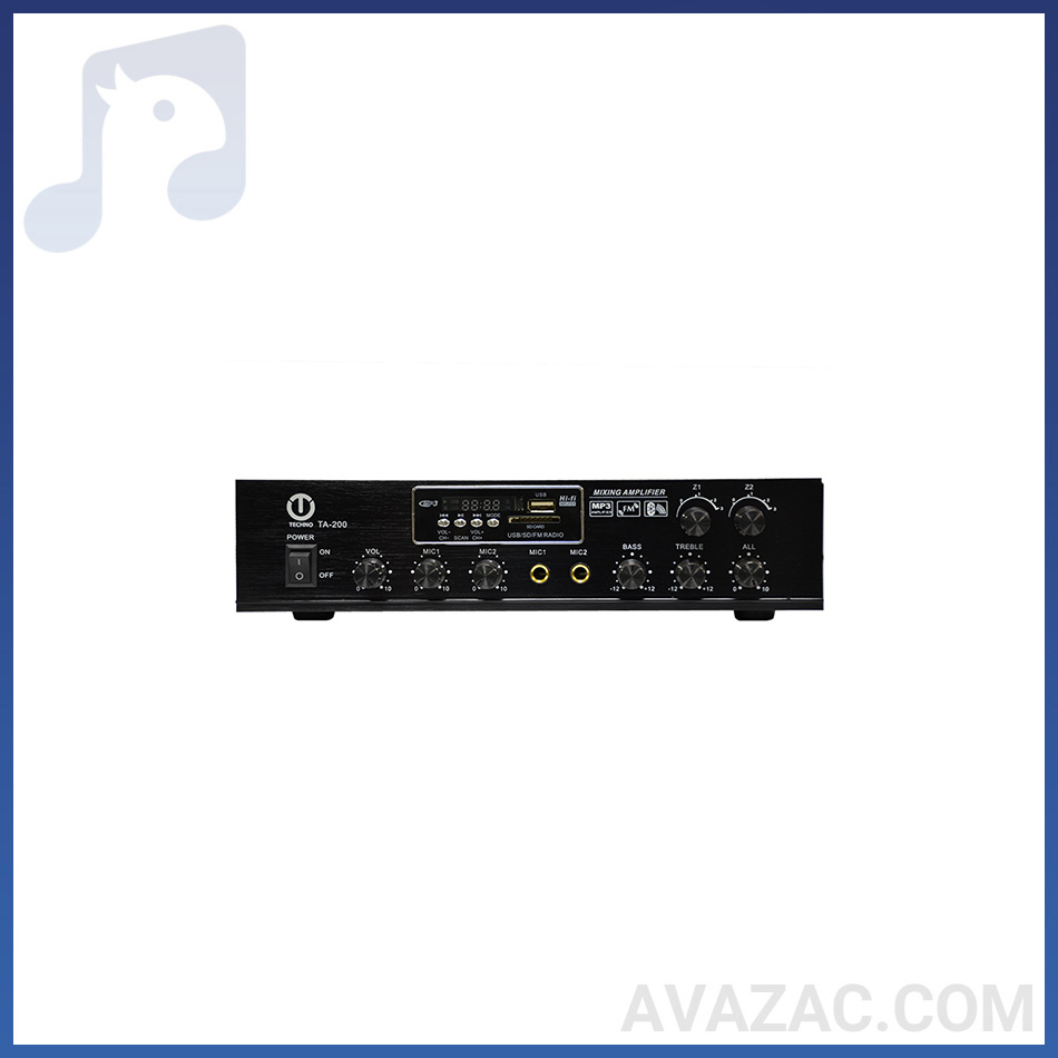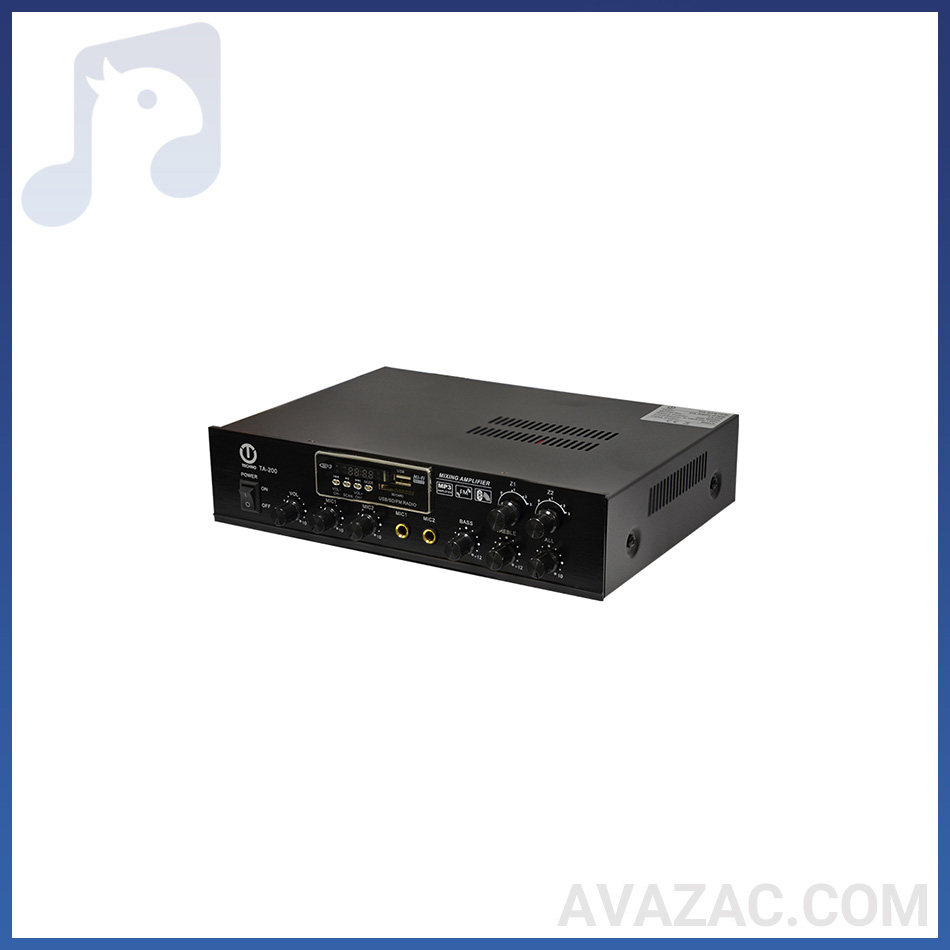 بازه فرکانسی ۸۰ هرتز تا ۱۸ کیلوهرتز در این آمپلی فایر یک ویژگی ویژه در آن خواهد بود بود. آمپلی فایر TA 200 دارای ورودیهایی نظیر AUX، USB، کارت SD و میکروفن است که این قابلیتها امکان اتصال انواع دستگاهها را فراهم میآورد. برای تنظیم دقیق صدا نیز، آمپلی فایر به شما این امکان را میدهد تا باس و تریبل را به دلخواه خود تنظیم کنید. این دستگاه قابلیت اتصال به بلوتوث و رادیو را نیز داراست که دسترسی آسان به انواع منابع صوتی را فراهم میکند.