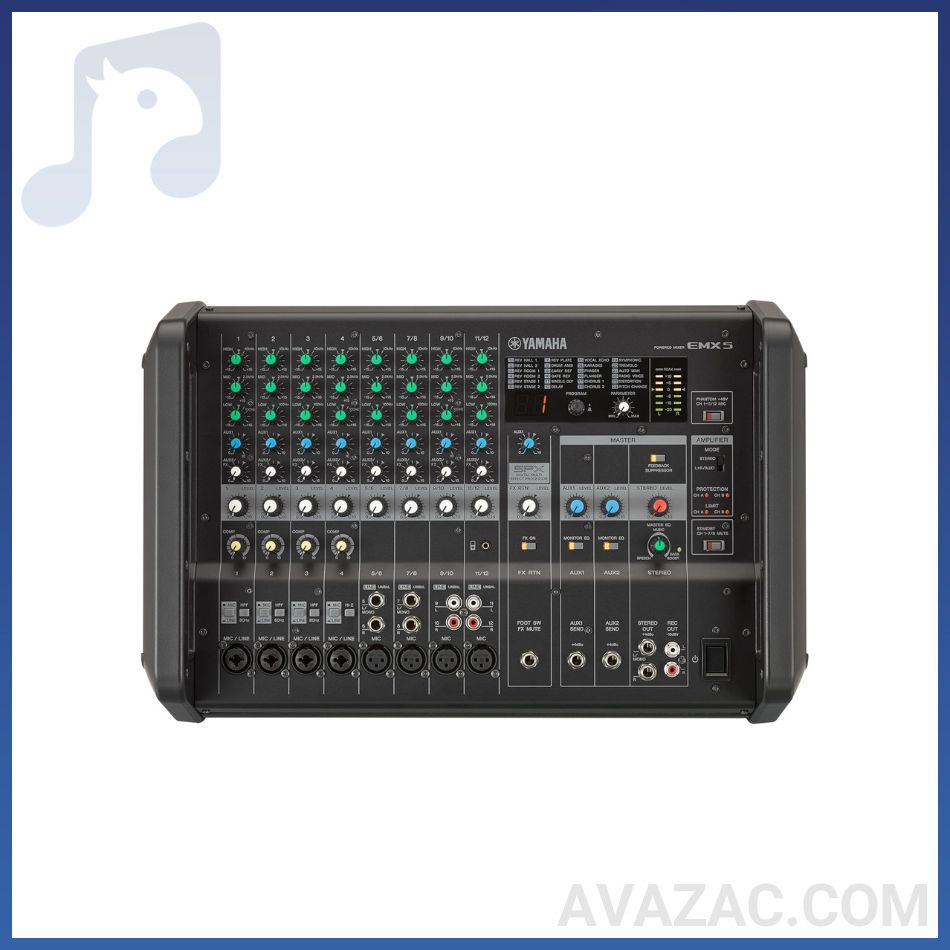 پاور میکسر Yamaha EMX5 با 12 کانال ابعاد 46×30×32 سانتیمتر و وزن 9.5 کیلوگرم، ترکیبی از میکسر صدا و آمپلیفایر قدرتمند با توان خروجی دو آمپلی فایر 460 وات 8 اهم را در بدنهای سبک و مقاوم ارائه میدهد.