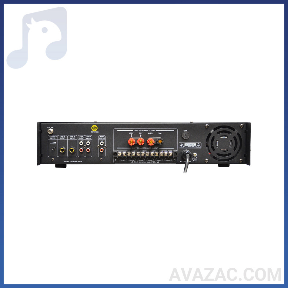 مینی آمپلی فایر اهمی ولتی مدل ZICO- P20: یک آمپلی فایر رومیزی کوچک و مناسب برای راهاندازی باند و بلندگوهای سقفی و دیواری اهمی و ولتی در مراکز آموزشی، مذهبی، فرهنگی و ورزشی است. دارای اکولایزر زیر و بم، ورودی USB، میکسر دو کانال، رادیو، میکسر دو کانال.