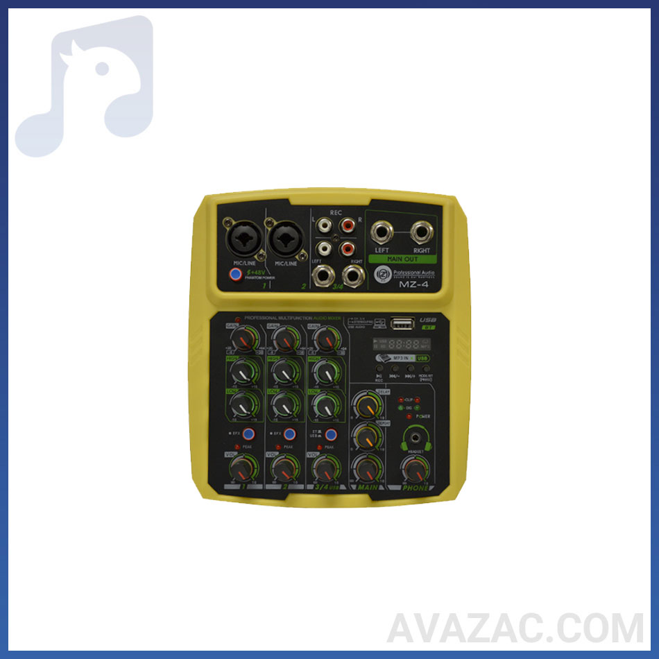 میکسر زیکو ZICO MZ-4، محصولی از برند خوشنام زیکو، یک میکسر صوتی چهار کاناله است که برای کاربردهای متنوعی از جمله استودیوهای خانگی، اجراهای زنده و سایر موارد مشابه طراحی شده است. این میکسر با ارائۀ صدای با کیفیت و امکانات گسترده، به کاربران امکان میدهد تا صداهای مختلف را به بهترین نحو ترکیب و تنظیم کنند و تجربۀ میکس حرفهای را در اختیار داشته باشند. برای تهیۀ این محصول میتوانید از طریق فروشگاه آوازک اقدام کنید.