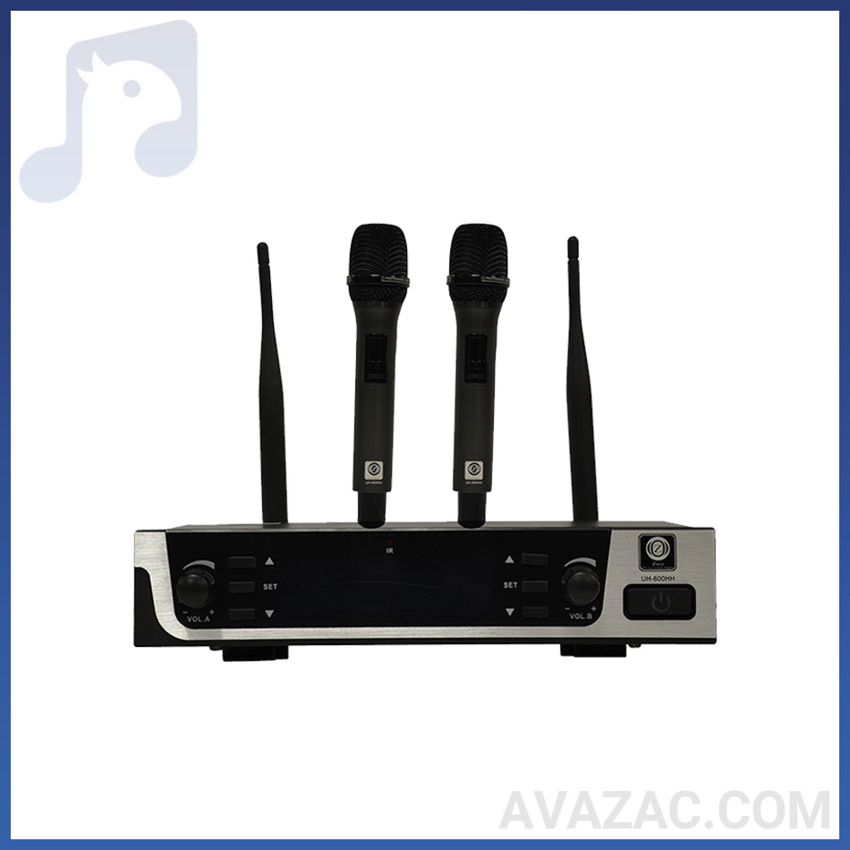 - میکروفون بیسیم دستی زیکو ZICO UH-600HH همانطور که از نامش پیداست، دو کاناله و دارای دو میکروفن دستی است. این محصول از ریسیور یا گیرنده دیجیتال پیشرفتهای بهره میبرد و در باند فرکانس UHF کار می کند.